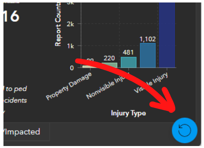 After selecting one or more filters, changing the default basemap, and/or changing the default data layers, it is possible to ‘reset’ the dashboard using the Reset button in the bottom right corner of the dashboard. The Reset button will not be shown until a default setting has been changed.